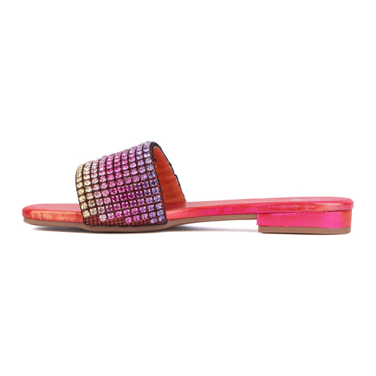 Pink Ombre Rhinestone Flat Sandal