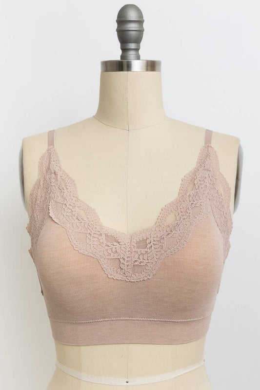 Ultra Soft Lace Trim Ribbed Padded Seamless Bralette