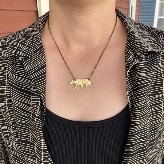 Brass Tiger Big Cat Pendant Necklace