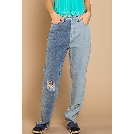 Coral and Green V-neck balloon sleeve color block floral sweater