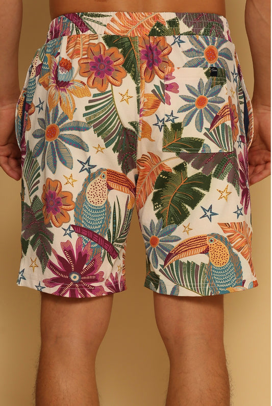 Toucan Tropical Printed Shorts with Tassels