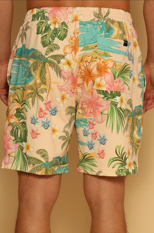HAWAIIAN PRINT LINEN SHORTS