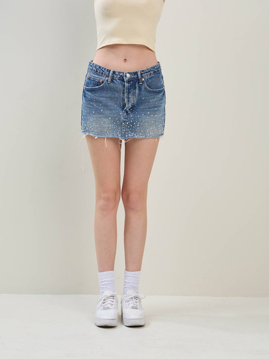 EMBELLISHED RHINESTONE DENIM MINI SKIRTRegular price $72.00Regular priceUnit price per-