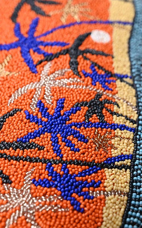 Sunset Checkered Stripe Beaded Shoulder Purse