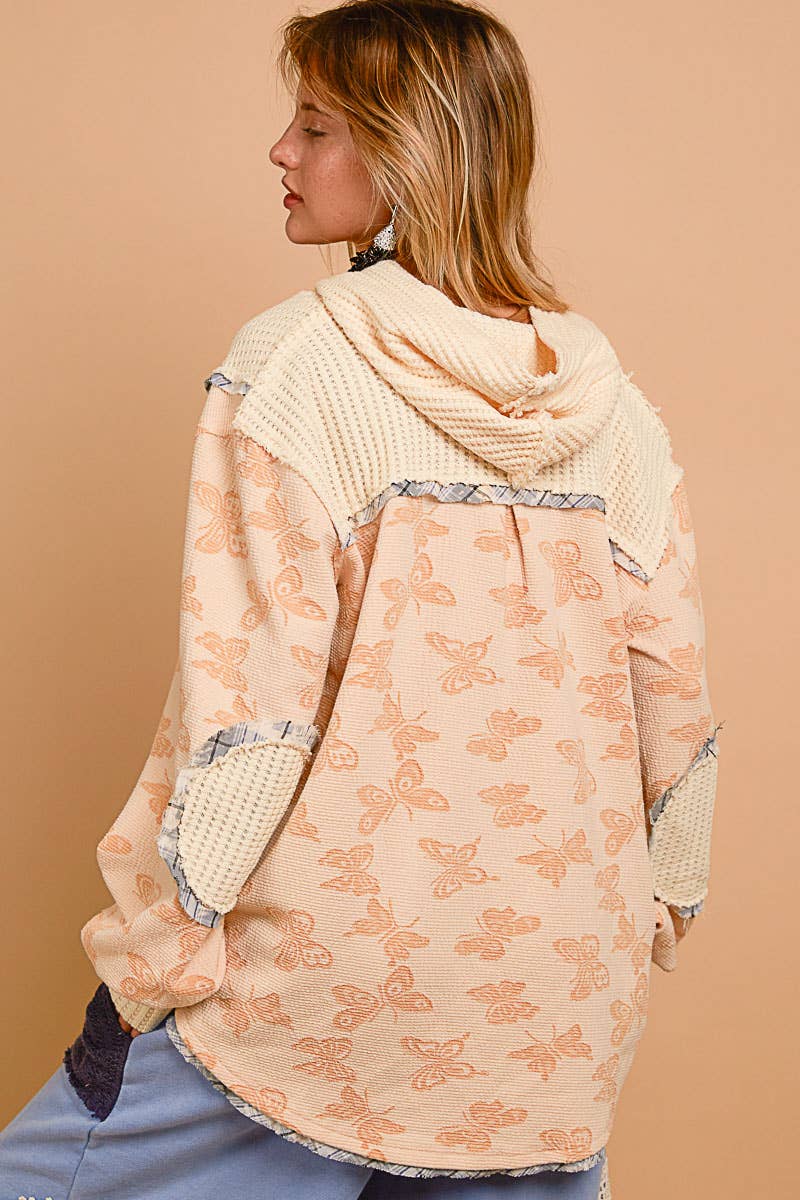 Butterfly Balloon Sleeve Hooded Thermal Knit Top