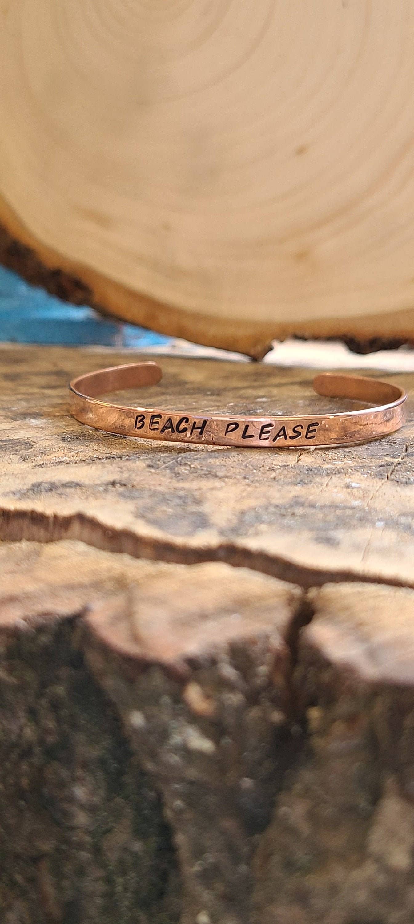 These bracelets are made of 100% recycled copper or brass that we have forged and hammered into cuff bracelets. They are pliable and can be formed to fit perfectly on wrist sizes from 5" - 8". Sleep in them, shower in them and stack them! Copper bracelets have long been proven as an effective healing aide for joint pain and inflammatory issues as well as overall balance and well being.