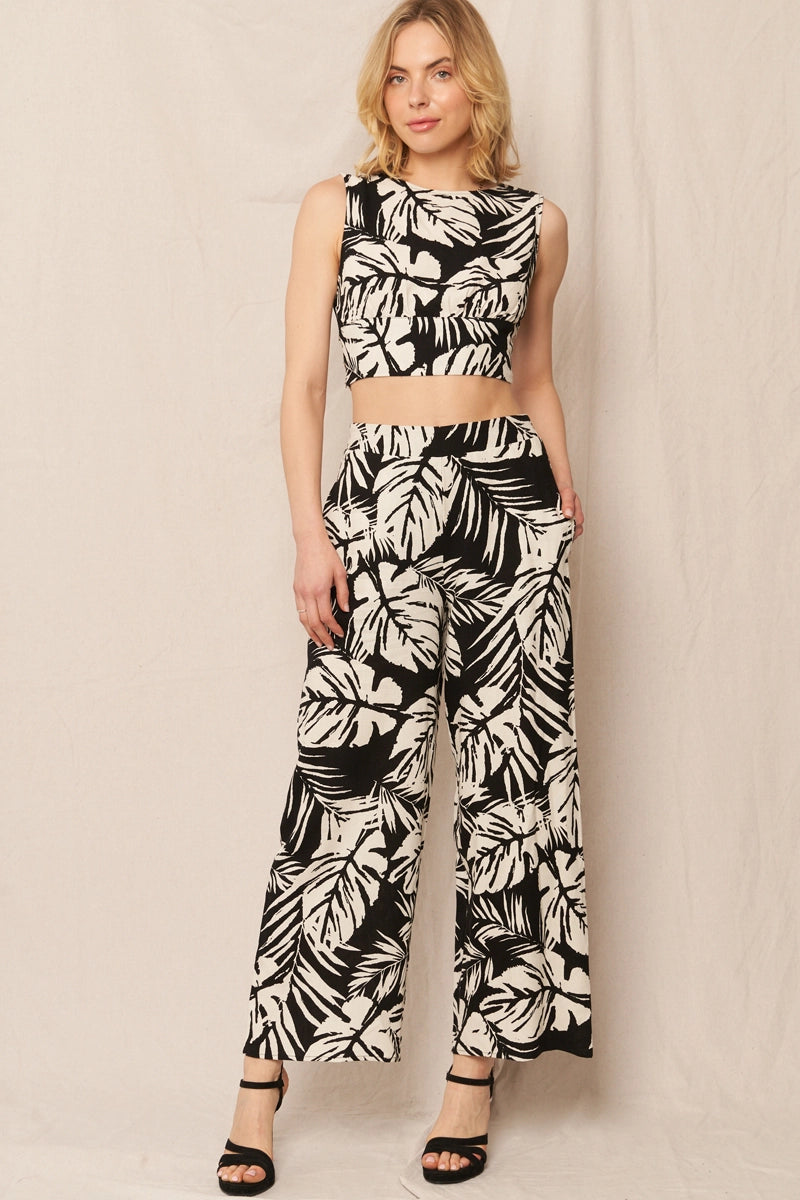 Printed Sleeveless Cropped Top and Pants Set 70% Rayon 30% Linen | Lining: 100% Polyester