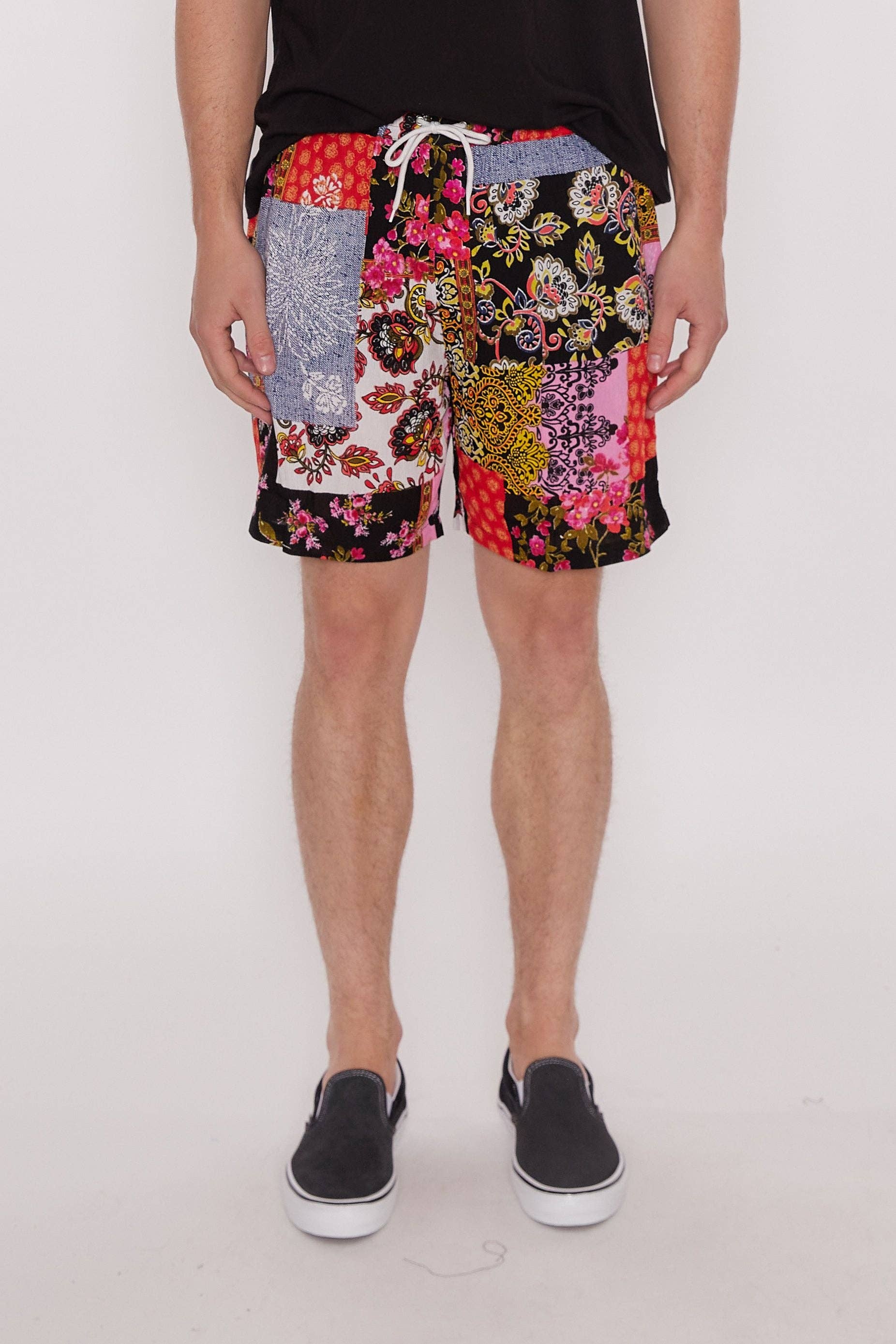 Style Features: Printed Viscose Rayon Patchwork Design Elastic Drawstring Waist Pocket Features