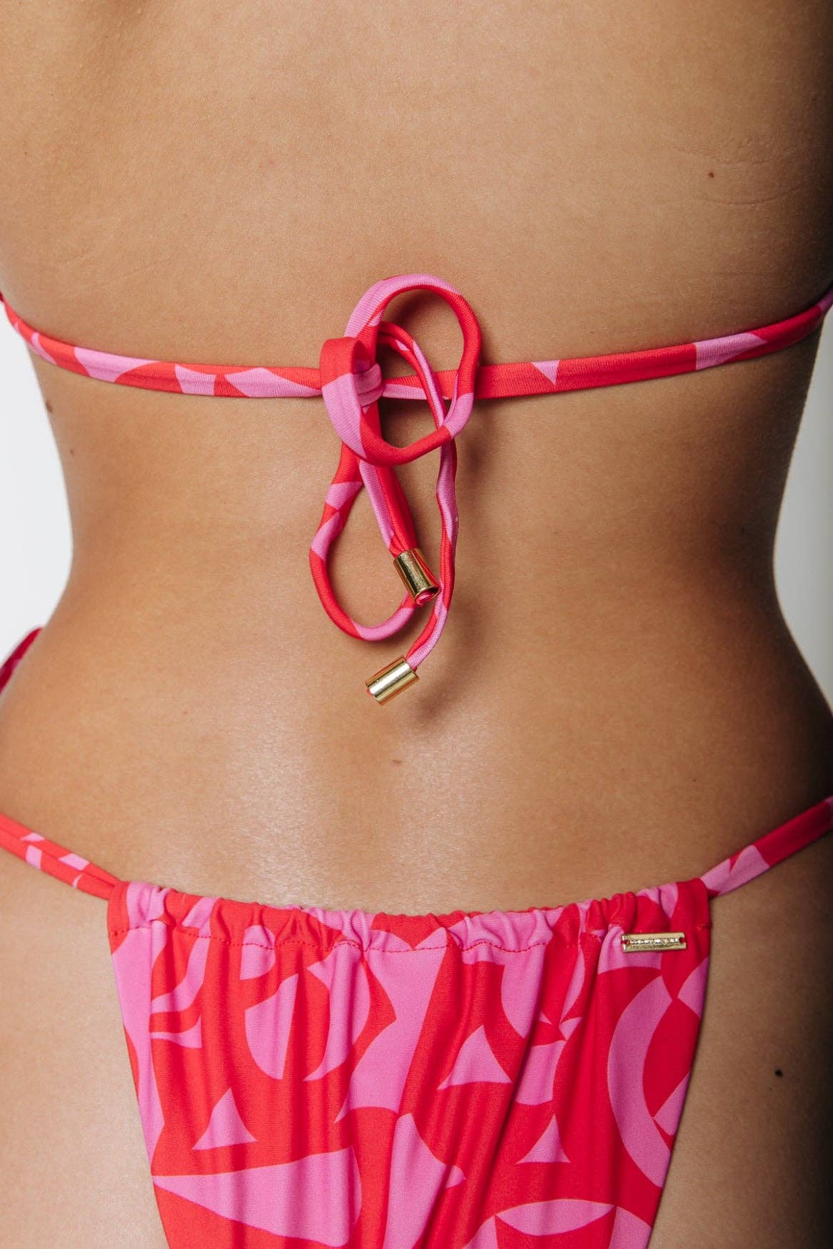 "Get ready to make a splash this summer with our Mia Swirl Bikini! With a playful swirl design in bold red and pink, this bikini top will be sure to turn heads at the beach. Don't miss out on this must-have for your summer wardrobe!"