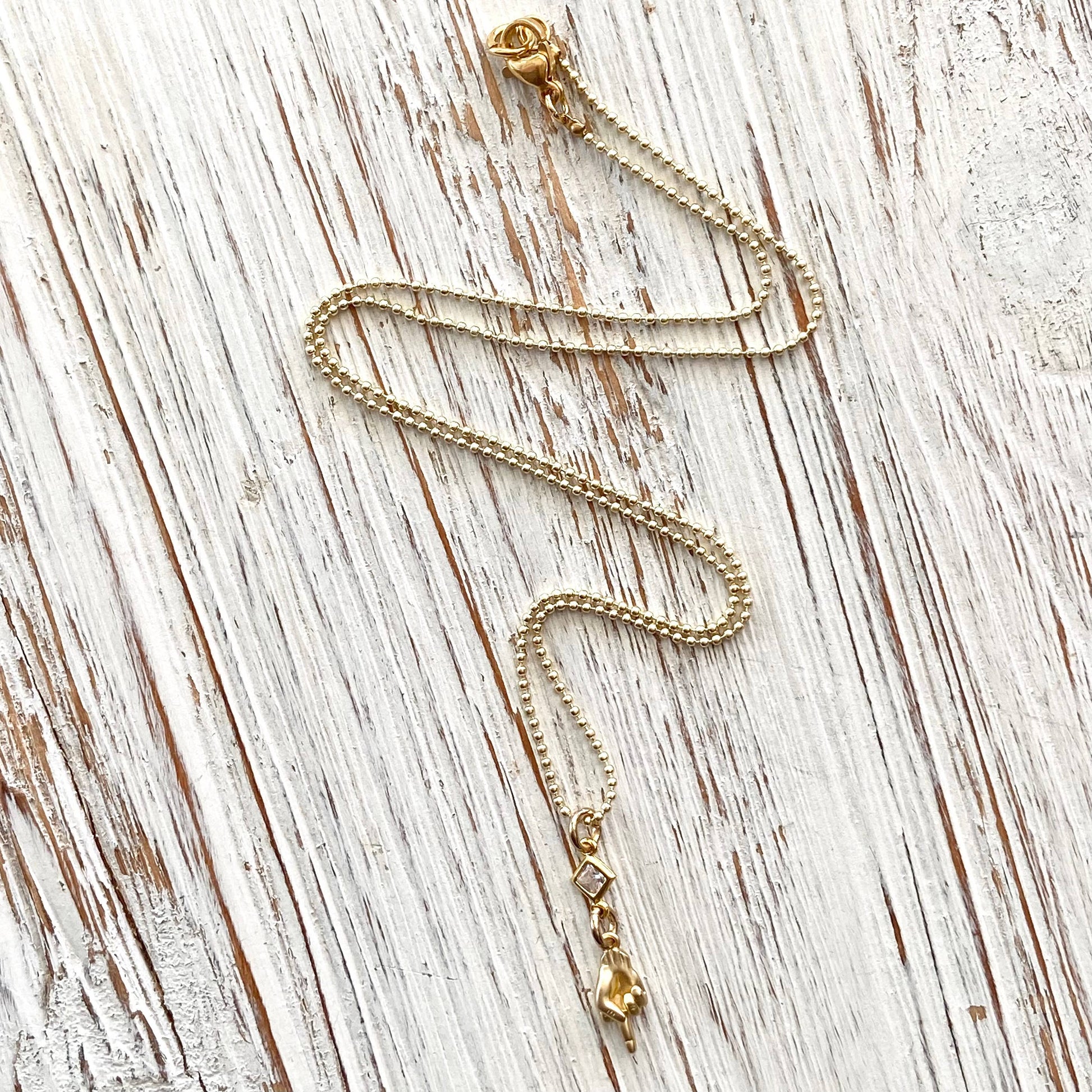 This whimsical matte gold or silver middle finger necklace is on a anti tarnish gold plated or silver micro ball chain. Choose your length
