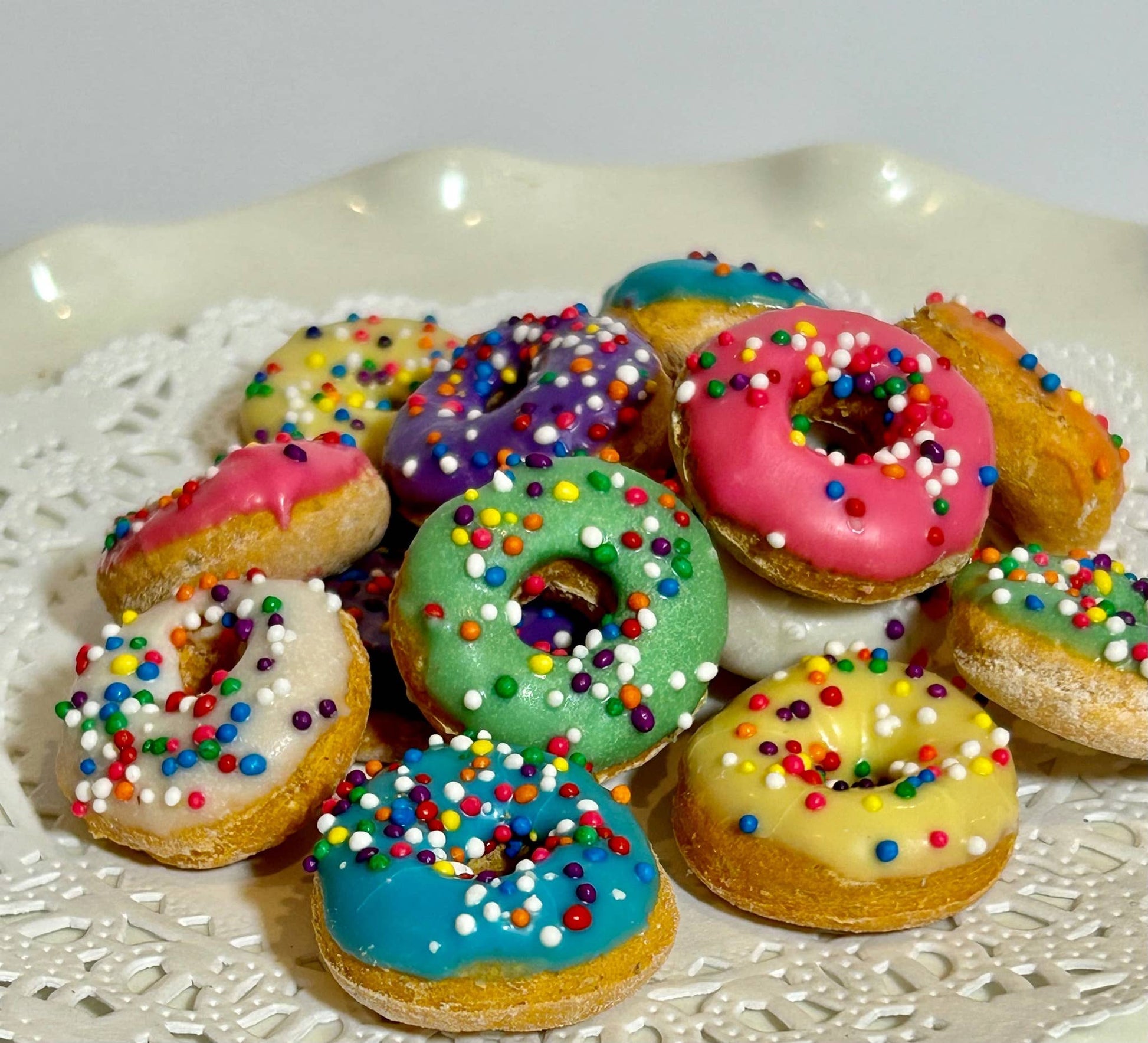 These Mini donuts will have any dog's tail wagging! These cute donuts taste as good as they look. Donuts are made with our delicious cheddar cheese dough.