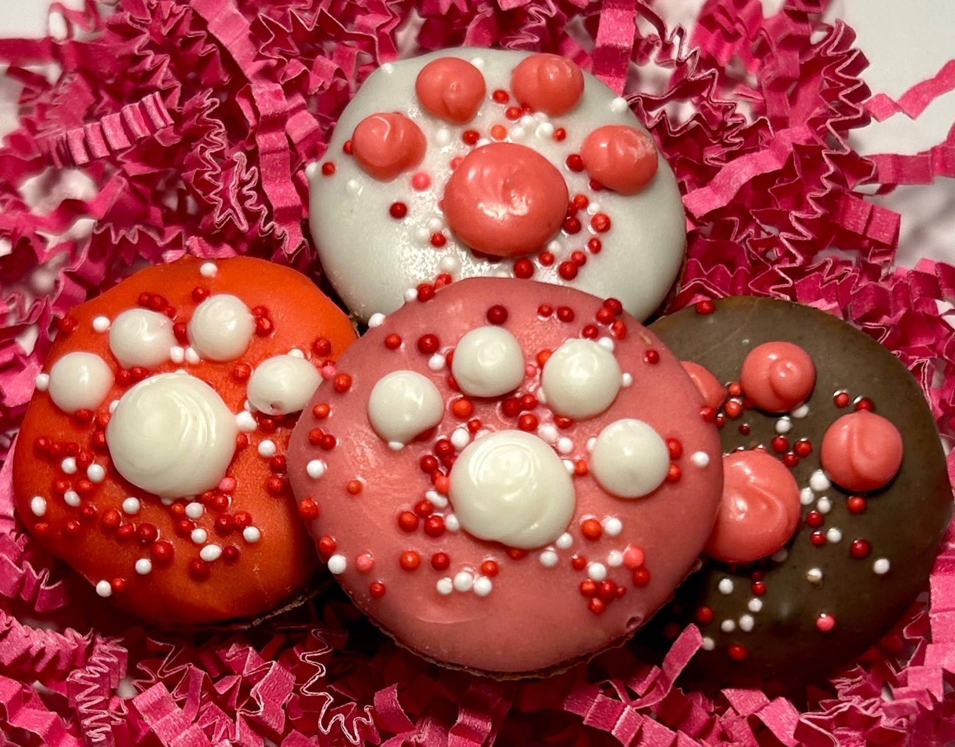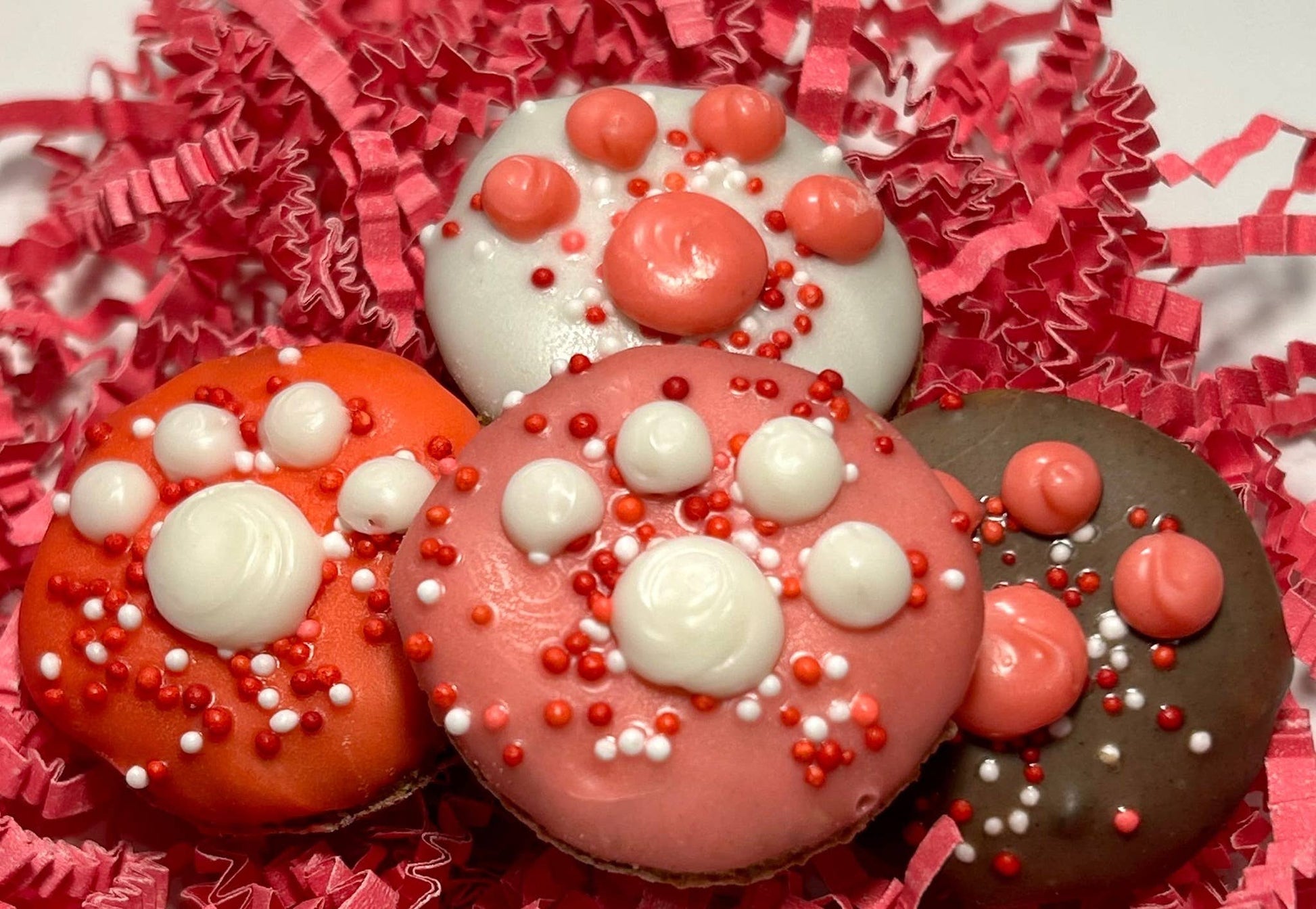 Coating: Yogurt and carob (NOT Chocolate) human grade nonpareil balls.