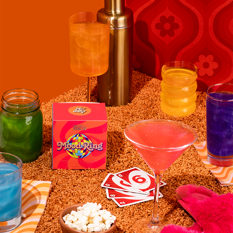 Are you feeling bitchin', freaky deaky, funky, psychedellic, far out, or groovy? Find out with Art of Sucre x Goodnight John Boy Mood Ring Martini Glitter Bombs!