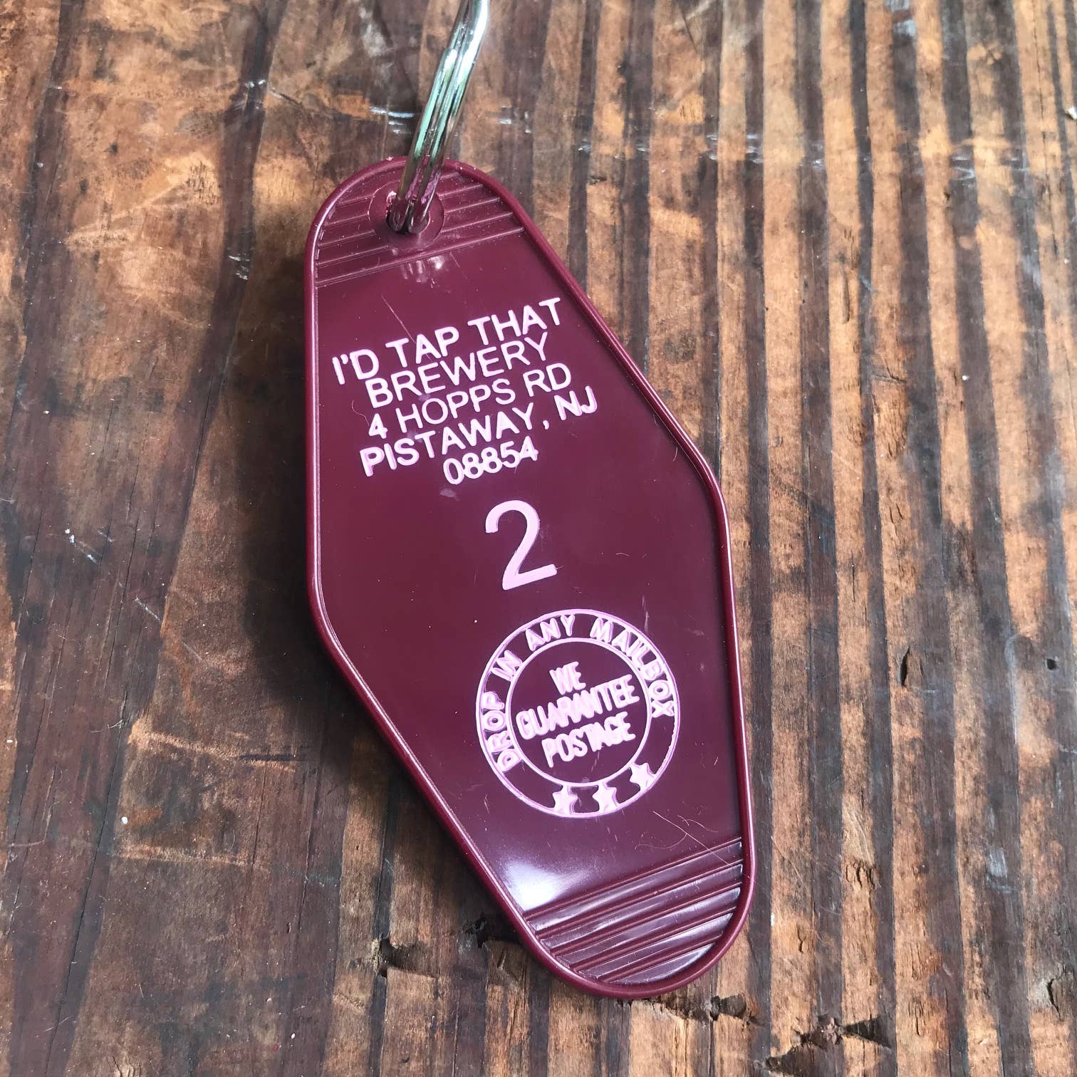Vintage style motel key fobs, complete with 32 mm slip ring, grab a beer.