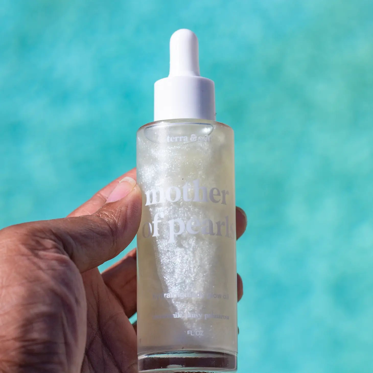 Iridescent, pearly glow body oil This rich, luxurious formula body oil that gives a hint of iridescent, pearl like glow. It creates a subtle luminosity for healthy looking skin, while leaving skin with a touchable, silky-soft feel. Infused with coconut, argan, and green tea seed oils and a tropical coconut aroma for soft, moisturized skin.