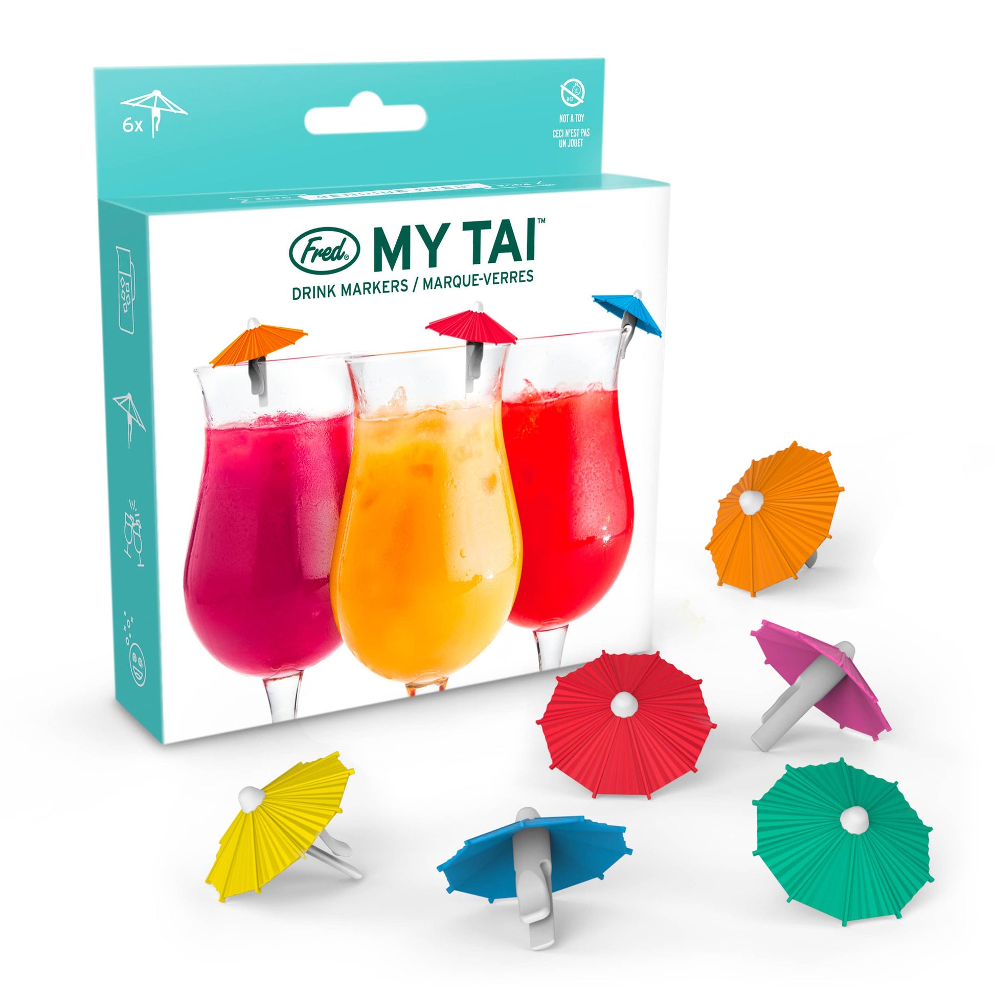 My Tai reusable drink umbrellas clip onto the side of beverages to tell everyone which mai tai is your My Tai. It’s the tropicool way to stake your claim! 6 per pack, made of food-safe silicone and PP plastic.