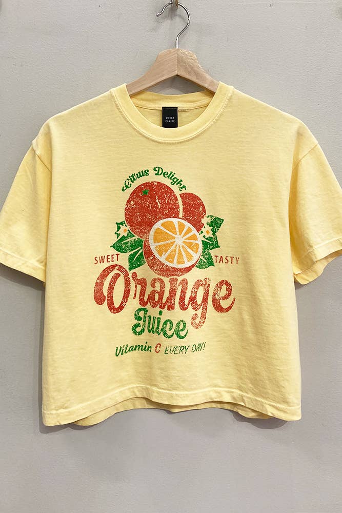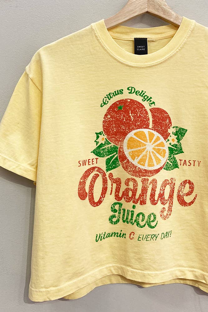 SHORT SLEEVE CROPPED LENGTH ORANGE JUICE SUMMER HEAVYWEIGHT COTTON GRAPHIC TEE