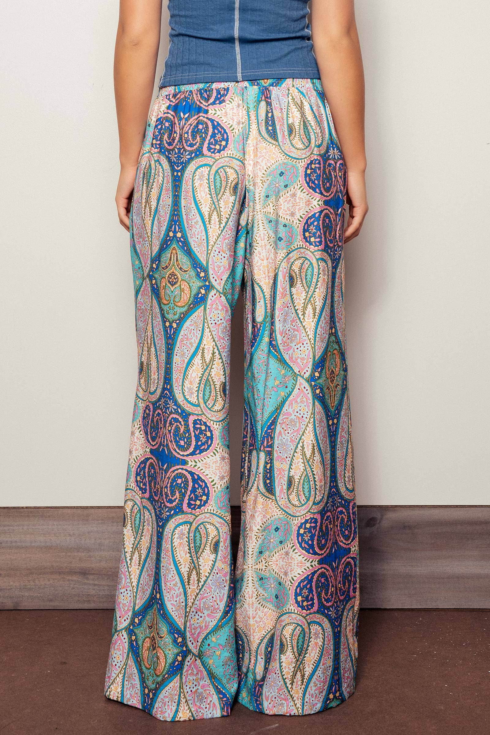 Bold paisley print for standout style • Wide-leg silhouette for flowing movement • Elastic waistband for comfort and fit