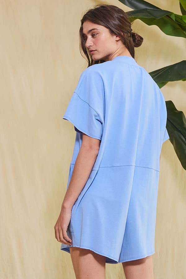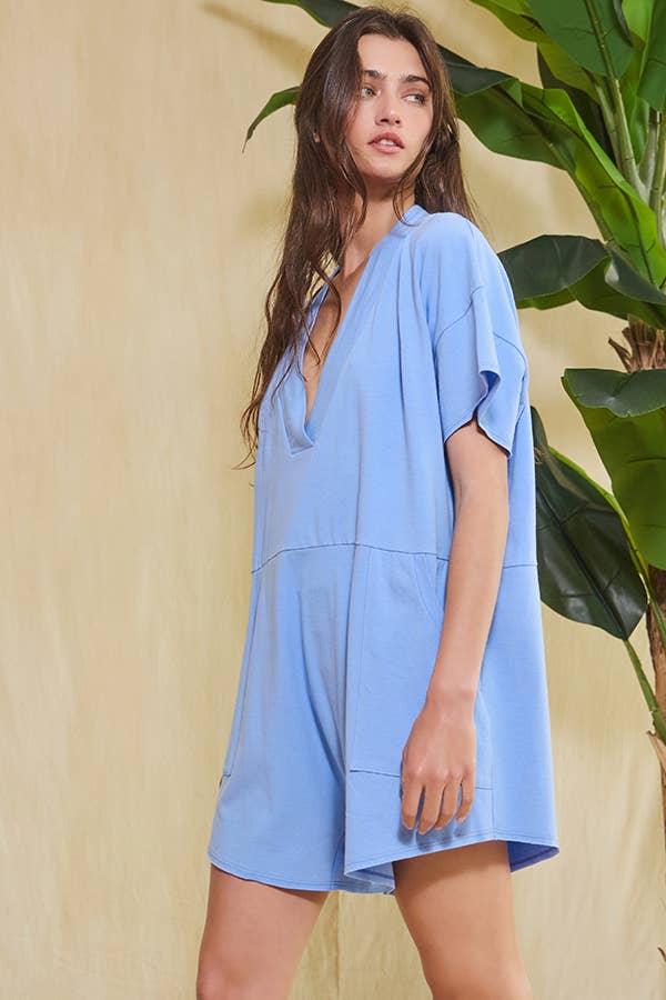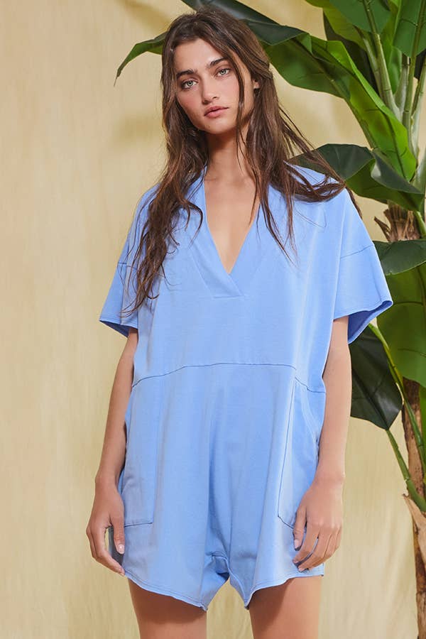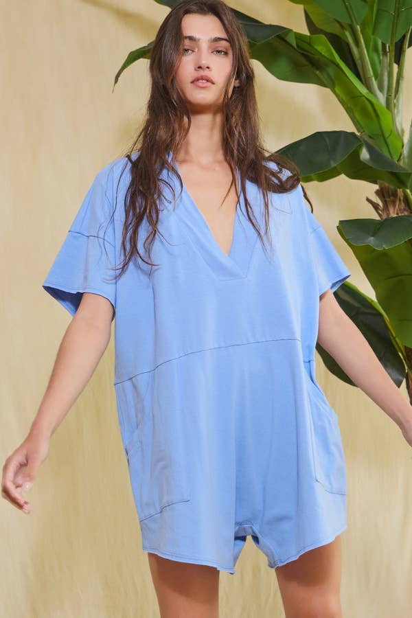 Blue Oversized Wide Legs Solid Romper With Pockets