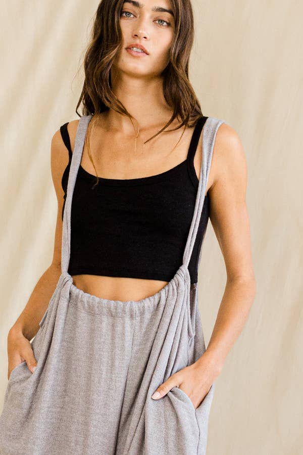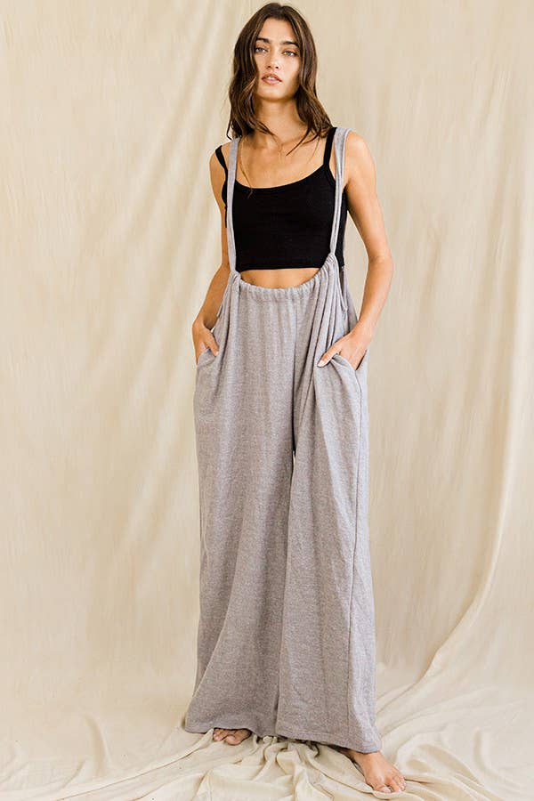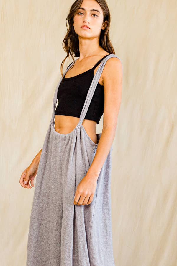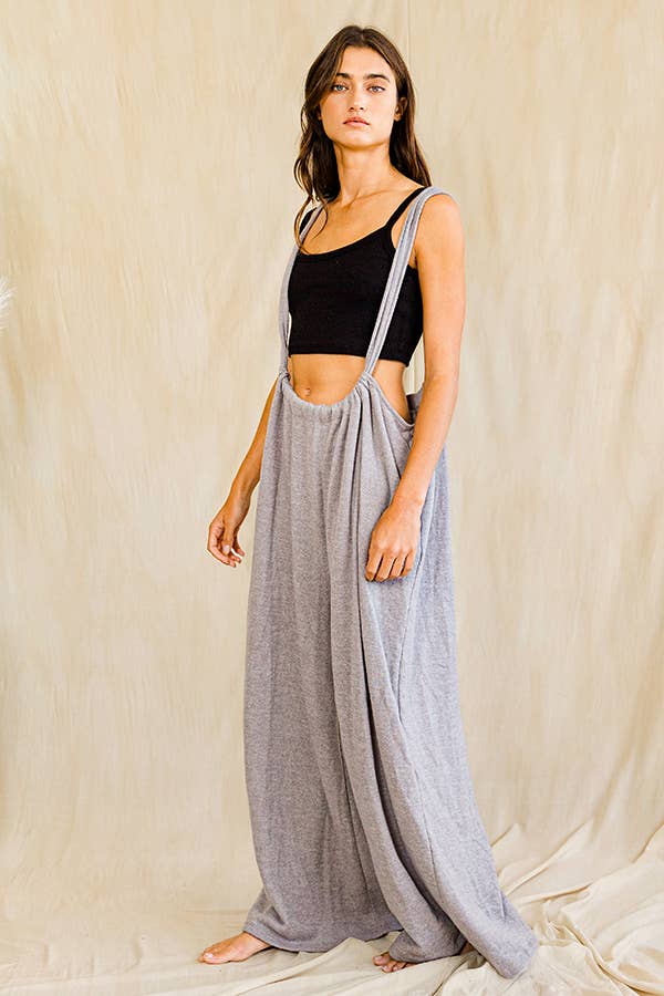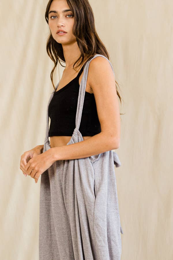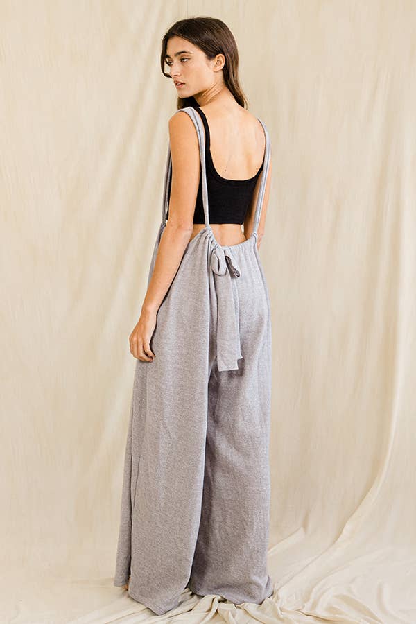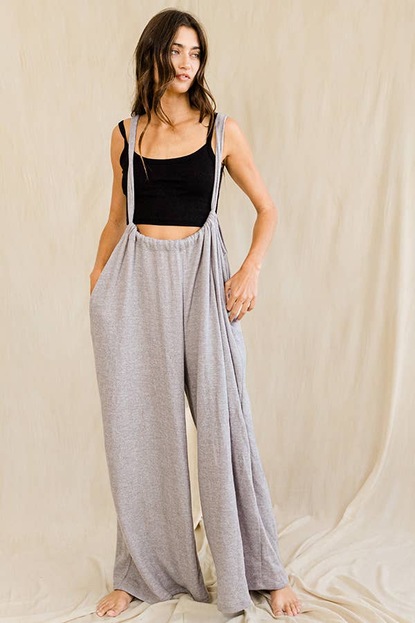 Grey Wide Leg Solid Brushed Knit Adjustable Length Jumpsuit