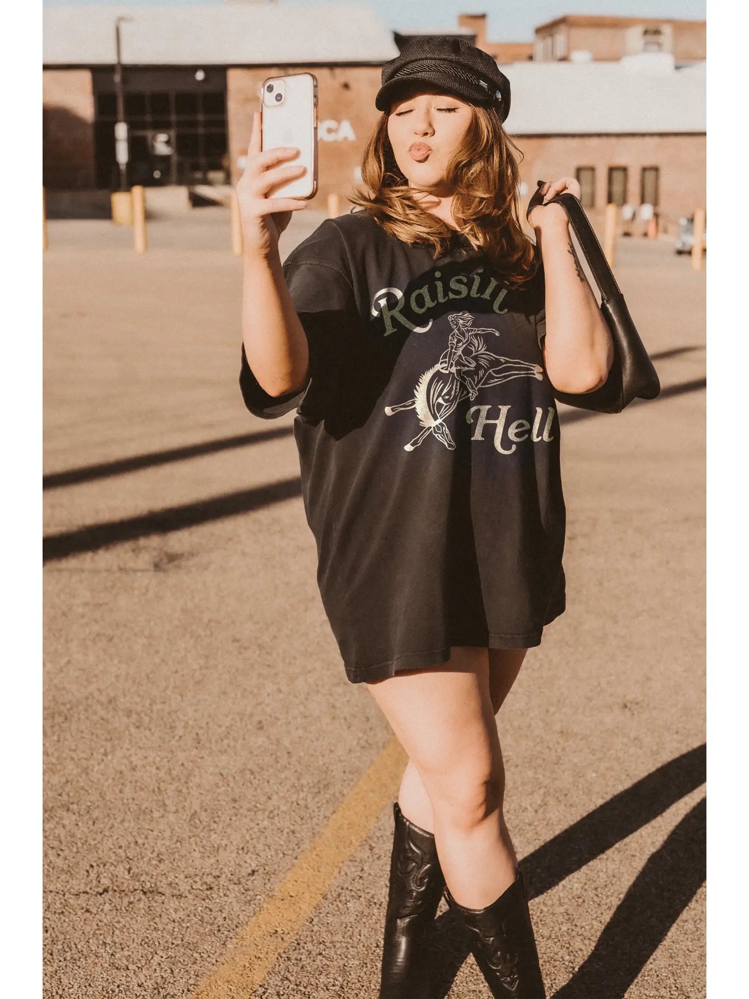 Raisin’ Hell Oversized Western Graphic Tee - Black