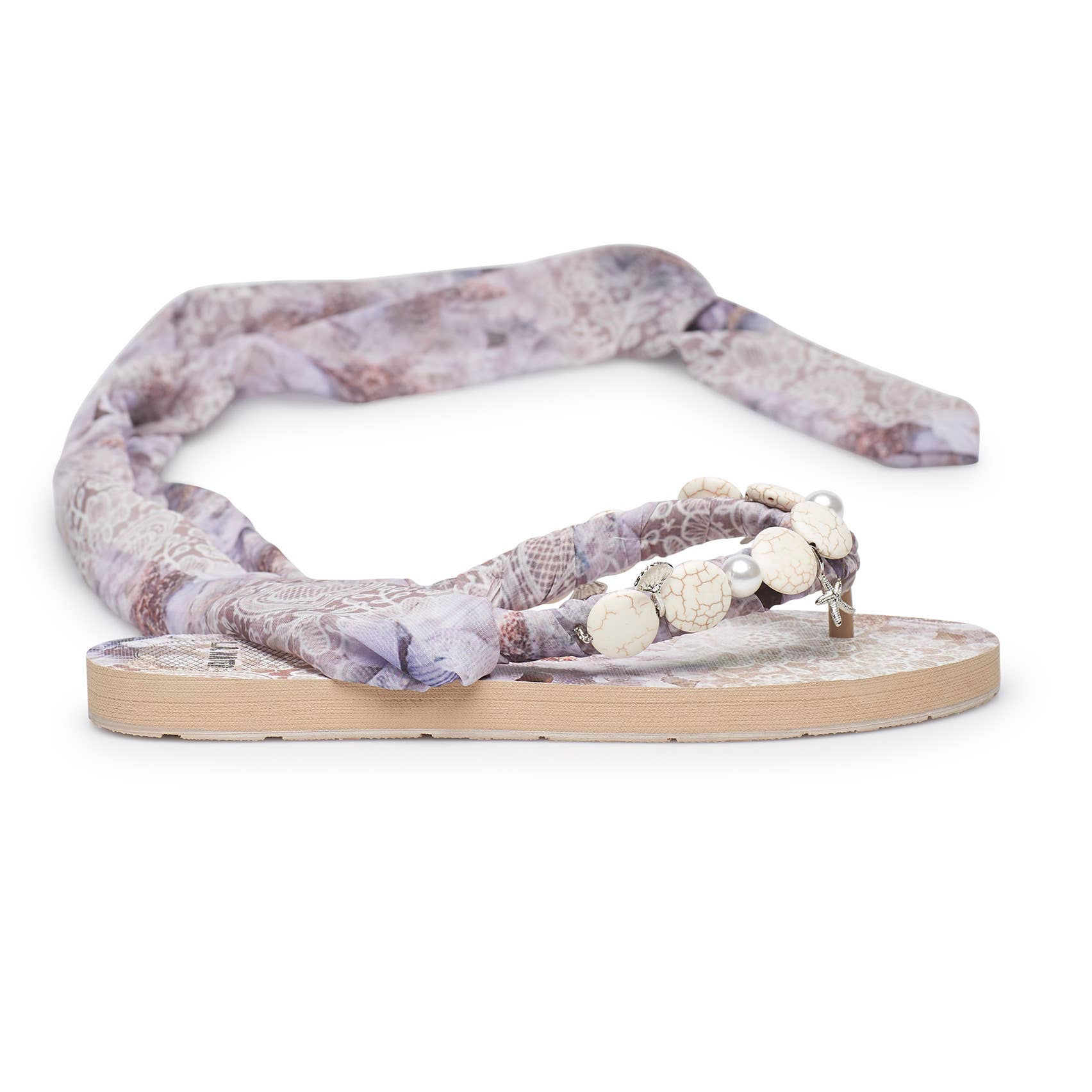 Sandal with a pattern inspired by the mysteries of the island, with marine elements and white lace.