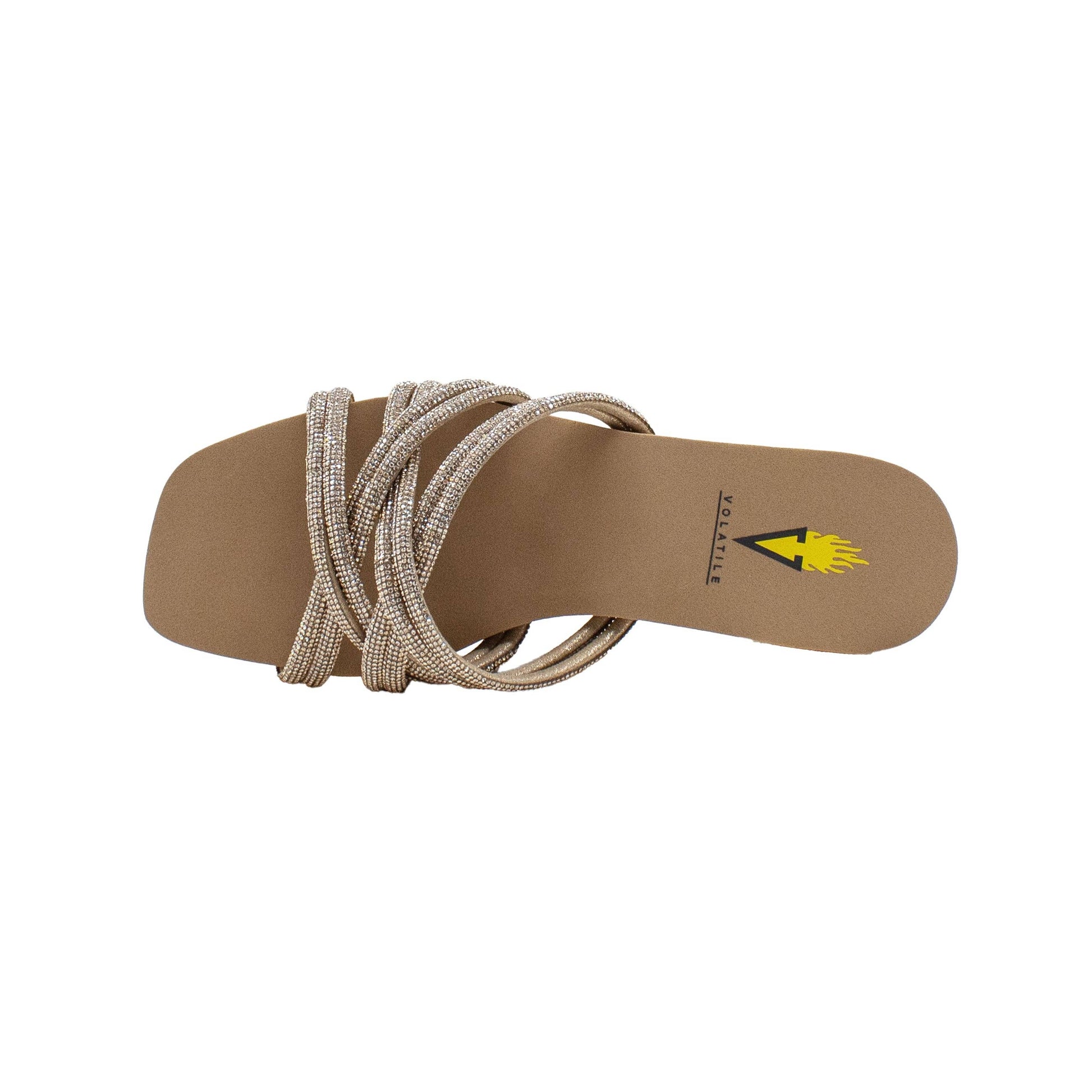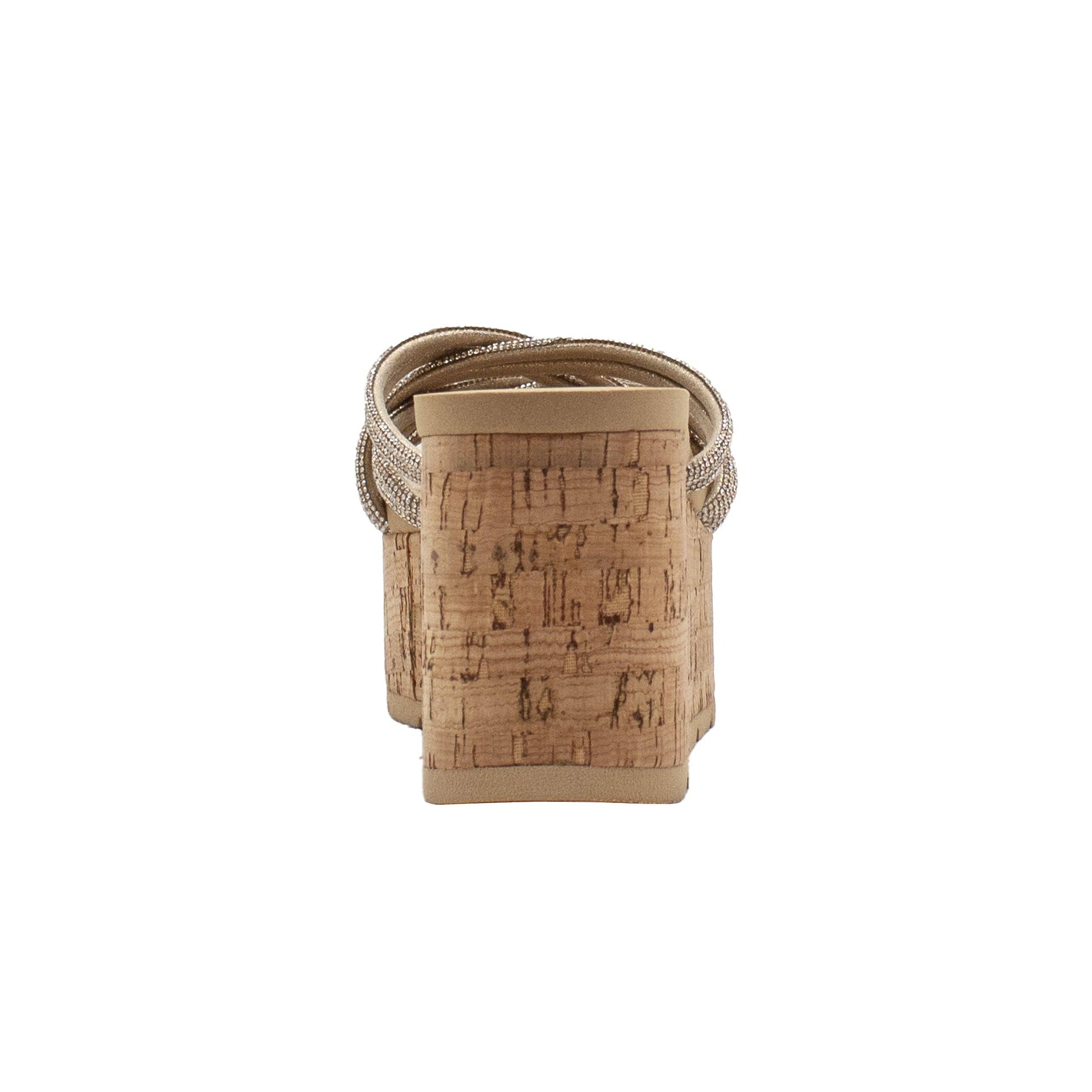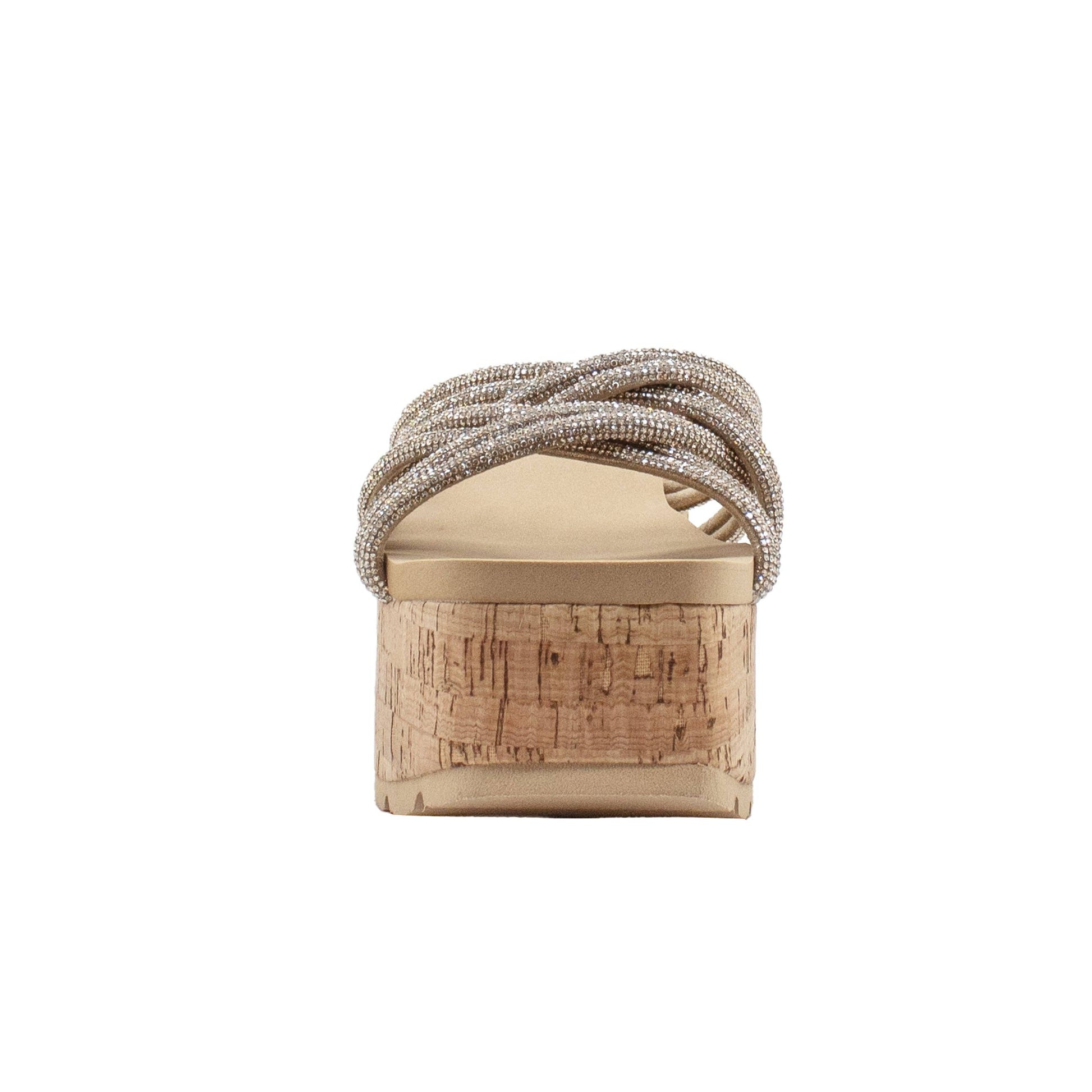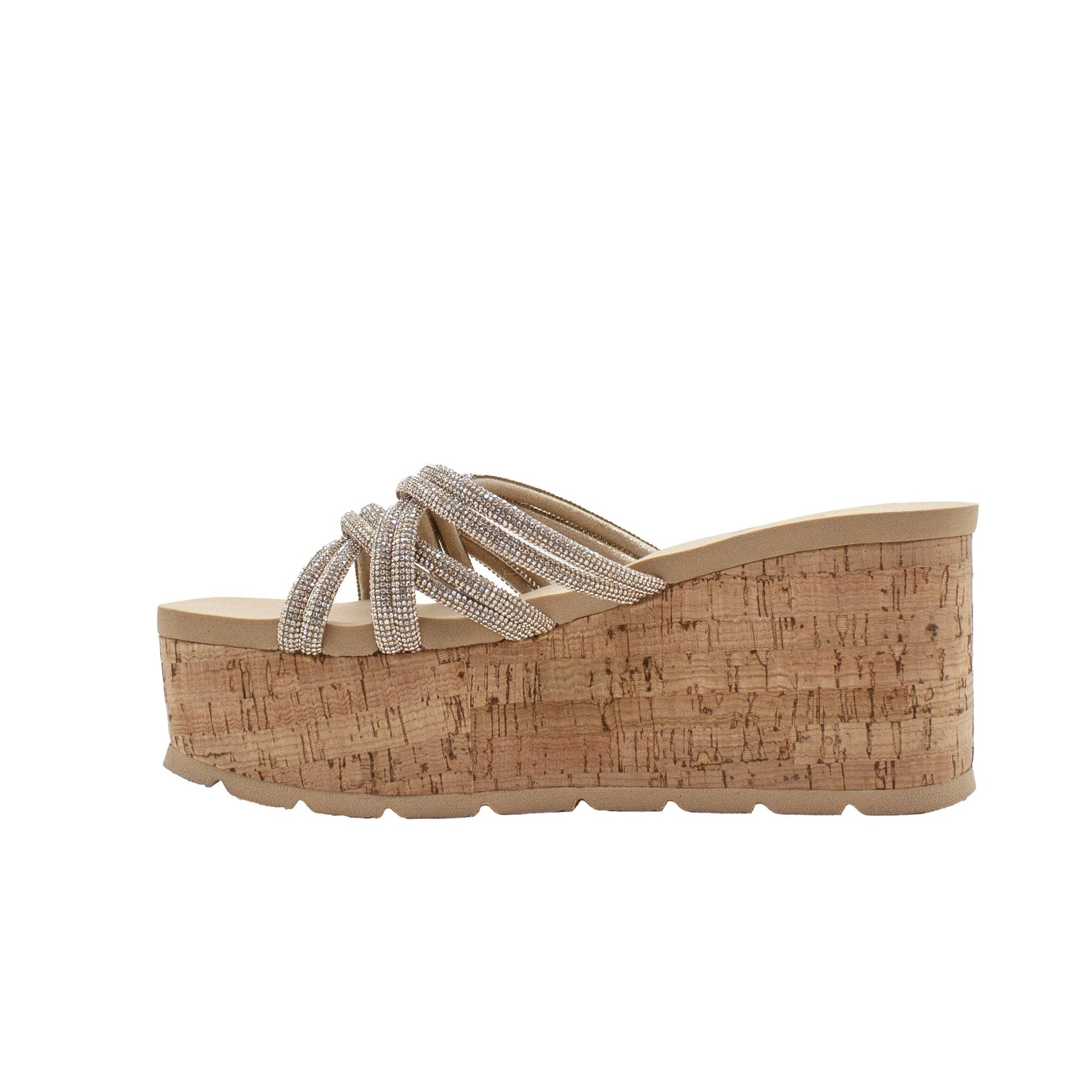 The Solaris wedge sandal from Volatile adds a touch of sparkle to your summer wardrobe, featuring a dazzling rhinestone slide upper that catches the light with every step. Set on a natural cork wedge, this sandal offers a comfortable lift, while the signature comfort EVA insole ensures all-day cushioning and support. Perfect for adding a little glamour to casual outings or evenings out, the Solaris wedge sandal combines stylish elegance with lasting comfort.