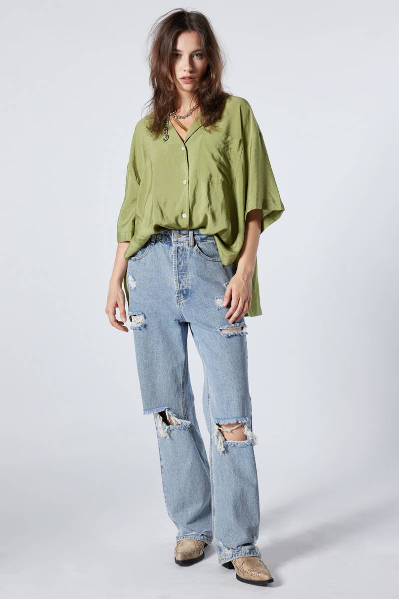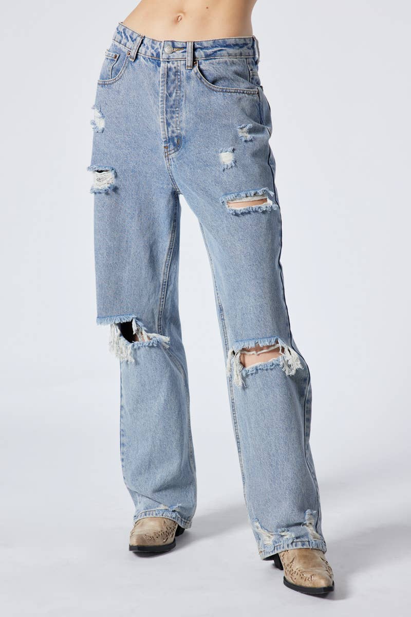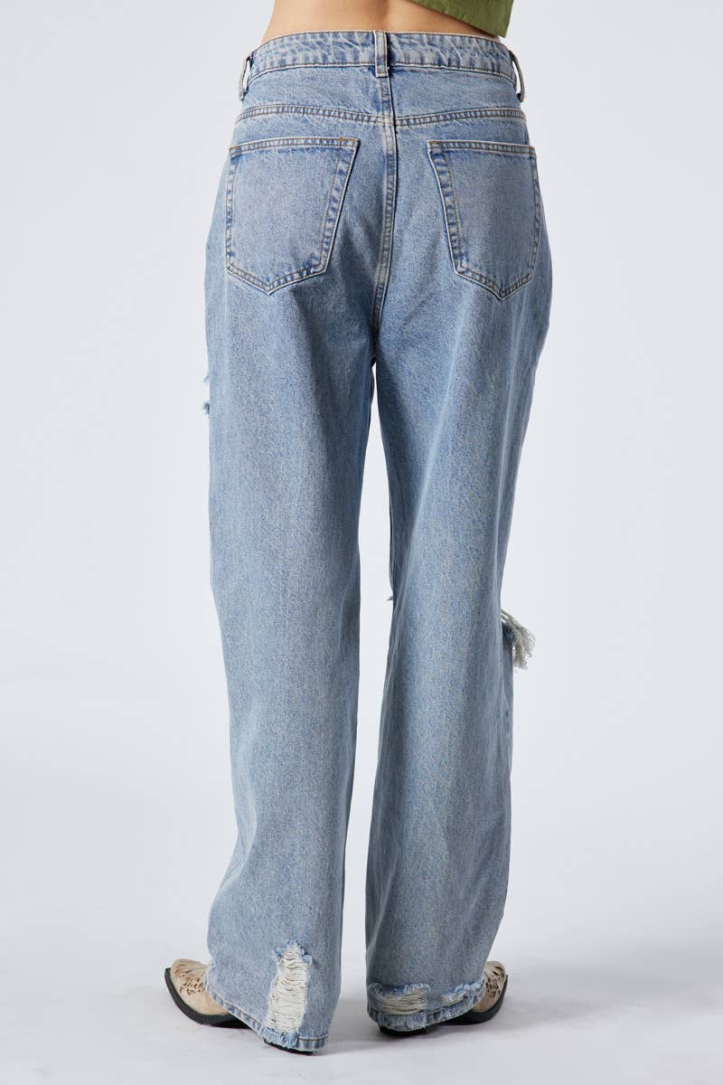 DESTROYED STRAIGHT LEG JEANS WITH FRONT AND BACK POCKETS