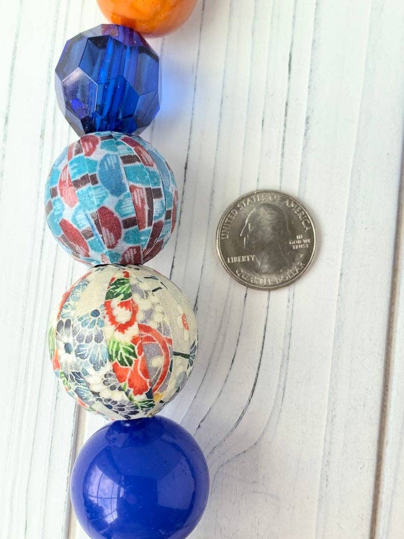 Make quite a splash with this statement necklace! Martin the Marlin along with a cool mix of glass and acrylic beads, agate slice and hand decoupaged pieces in vintage prints is sure to be a conversation starter! Necklace measures 37".
