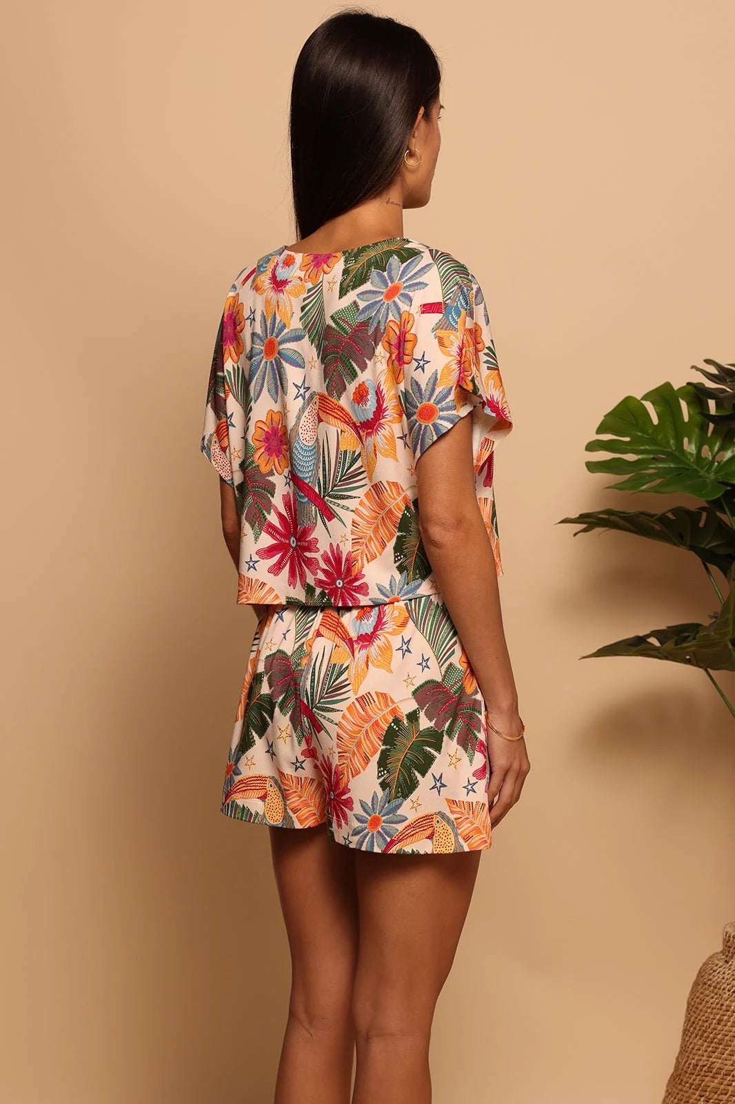 - Vibrant, tropical print