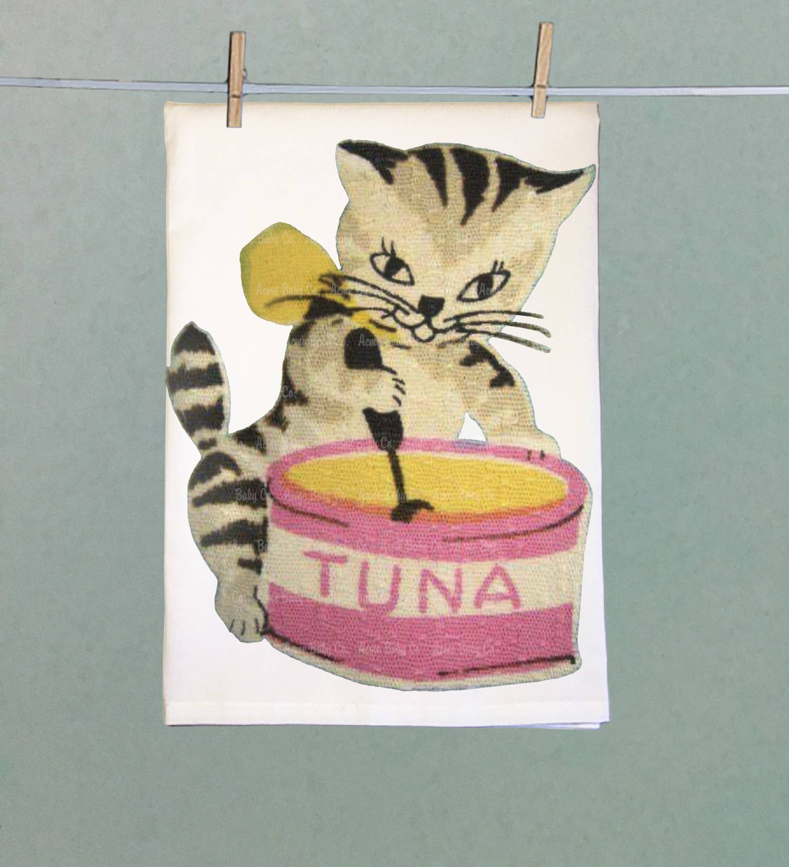 Tuna Can Kitten Organic Tea Towel