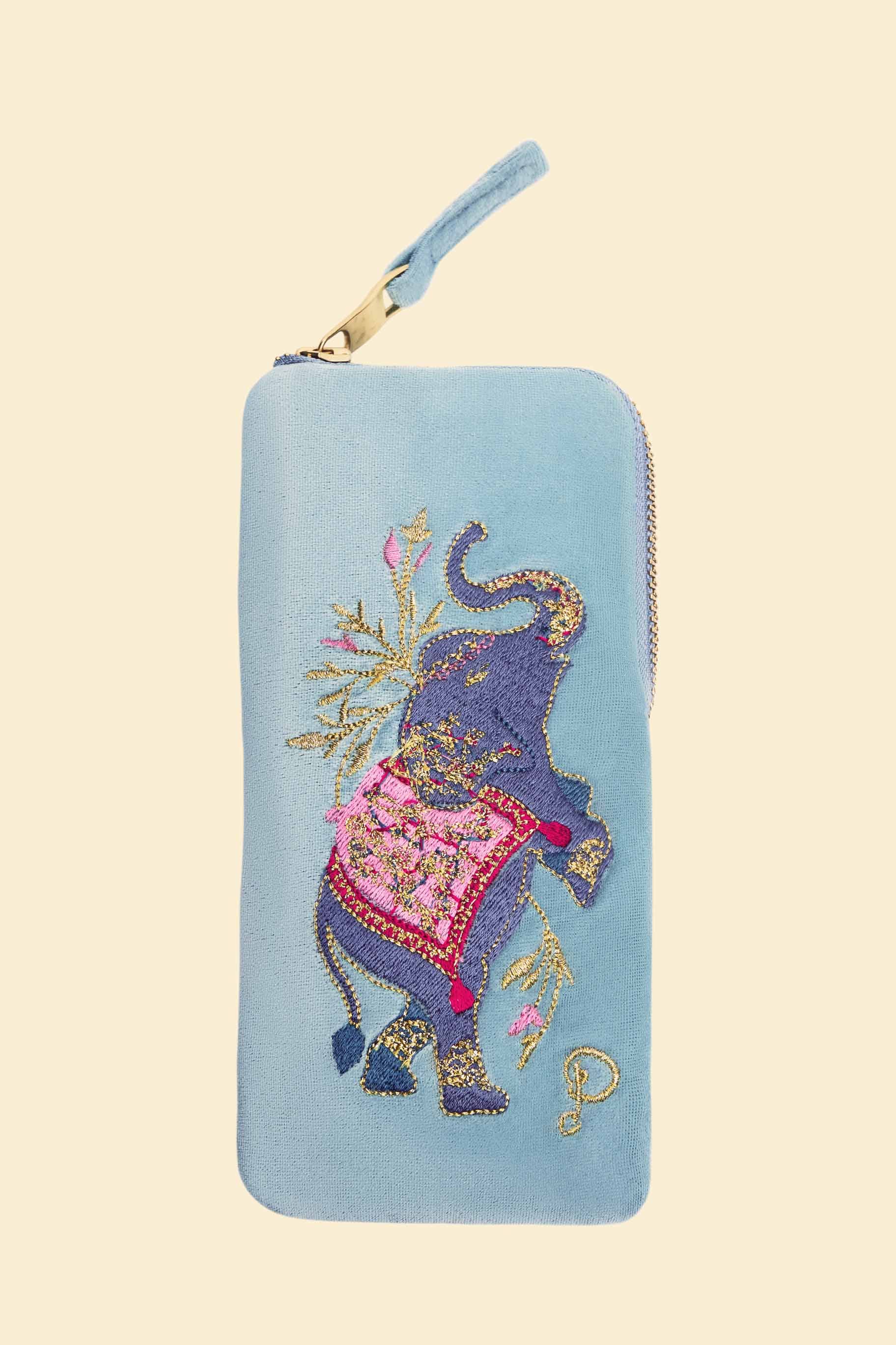 Velvet Glasses Pouch - Elephant in Cornflower