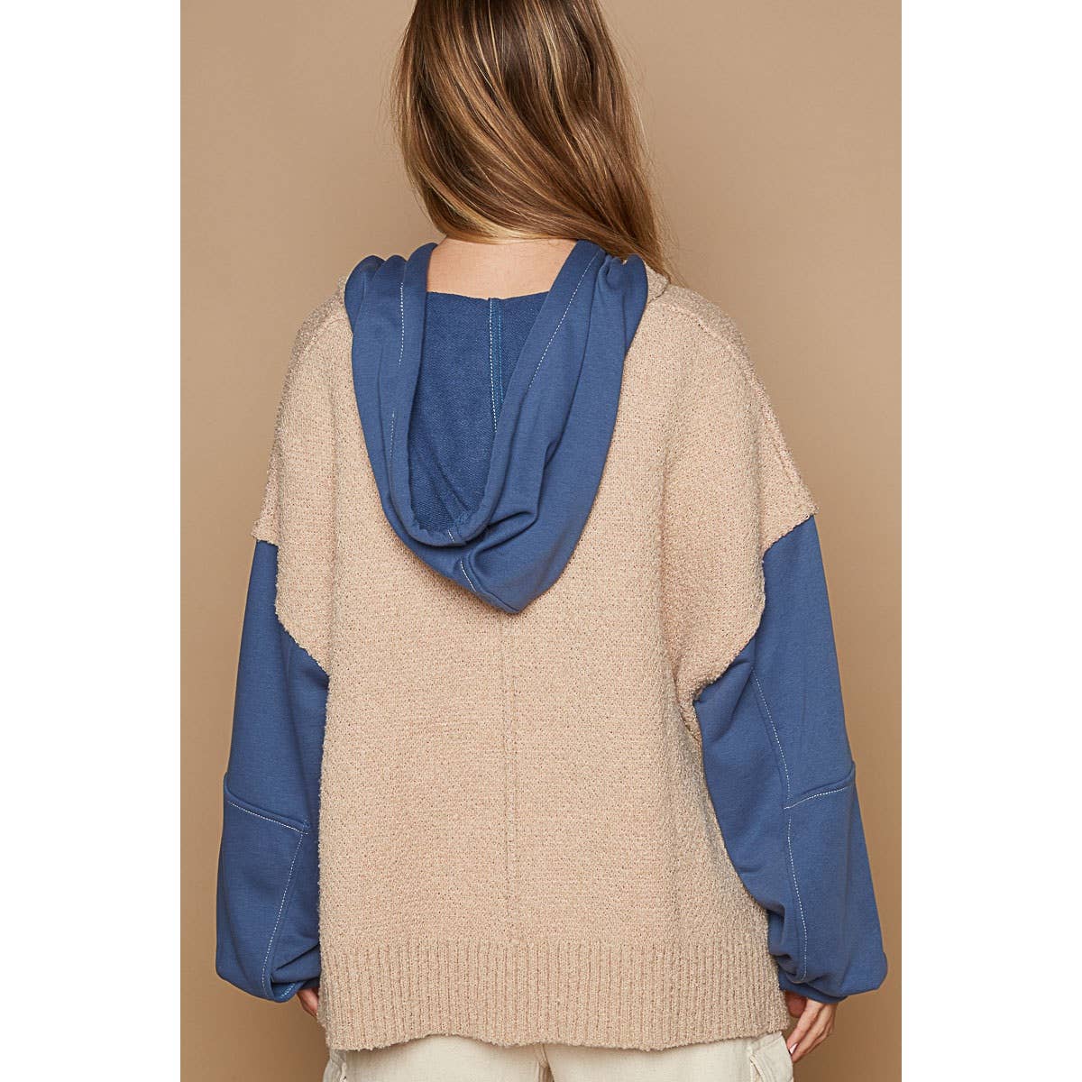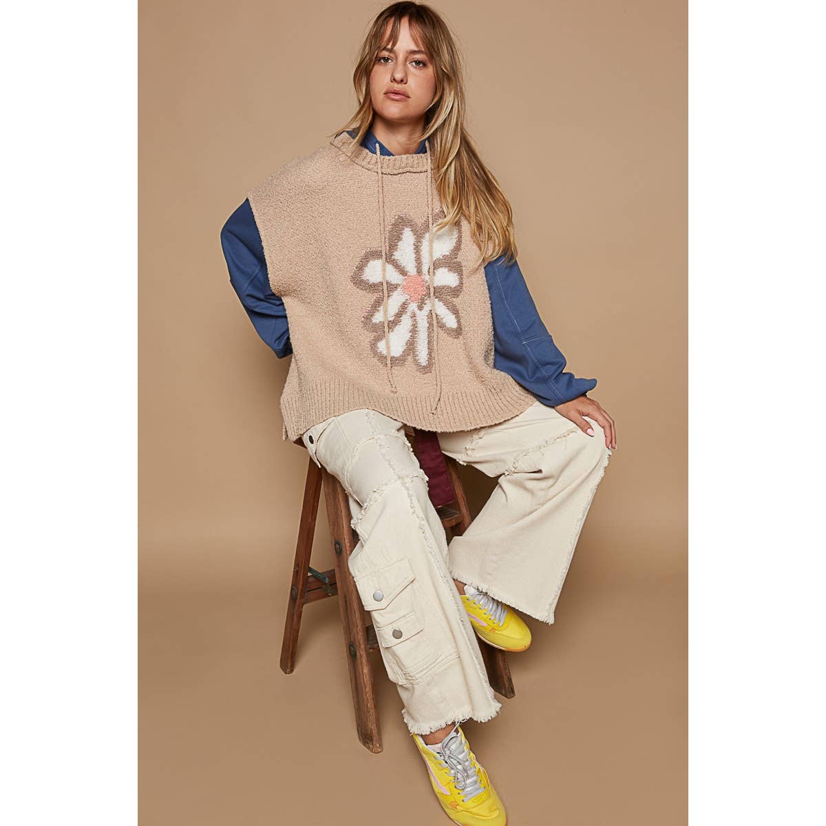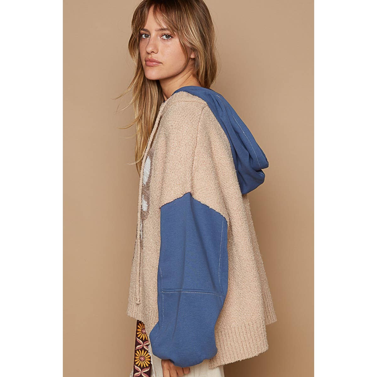 Wheat/Navy Oversized Balloon Sleeve Flower Sweater
