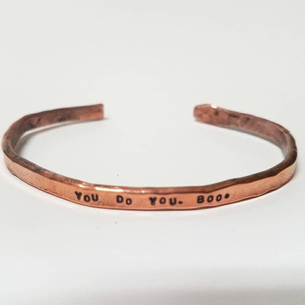 Copper bracelets have long been proven as an effective healing technique joint pain and inflammatory issues as well as overall balance and well being. Personally, I like the cold feel of the metal as it does not conduct heat as easily as other metals. It feels cool on my wrist which helps with my carpal tunnel. It also makes me feel grounded and balanced.